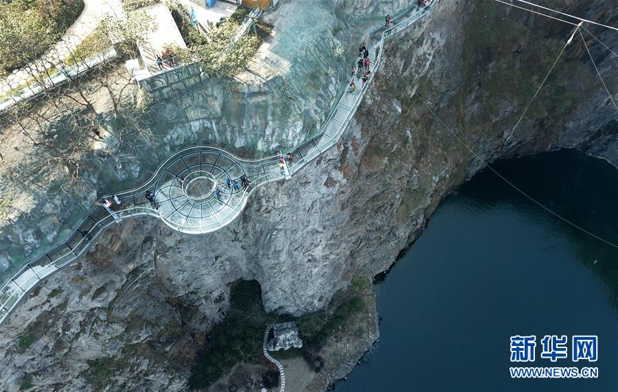 12月18日,游客在樂園內(nèi)的玻璃棧道上行走(無人機(jī)拍攝)。 當(dāng)日,“世茂精靈之城主題樂園奇幻親子嘉年華開幕暨上海公益基地揭牌儀式”在位于上海佘山國家旅游度假區(qū)的世茂精靈之城主題樂園一期(“深坑秘境”)正式啟動(dòng)?!吧羁用鼐场迸徤虾Y苌绞烂揠H酒店,除了擁有俯瞰“深坑”的玻璃棧道外,還包括360度崖壁大擺錘、精靈樹屋、沙漠考古、夢幻水域和蟲蟲世界等項(xiàng)目,帶來親子游玩新體驗(yàn)。 新華社記者 方喆 攝