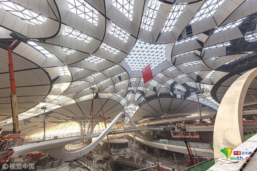 2018年12月19日,北京大興國際機(jī)場航站樓的室內(nèi)裝修正在推進(jìn)中。視覺中國