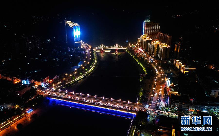 夜幕下的荔浦市中園橋一帶(12月17日無人機拍攝)。 新華社記者張愛林攝