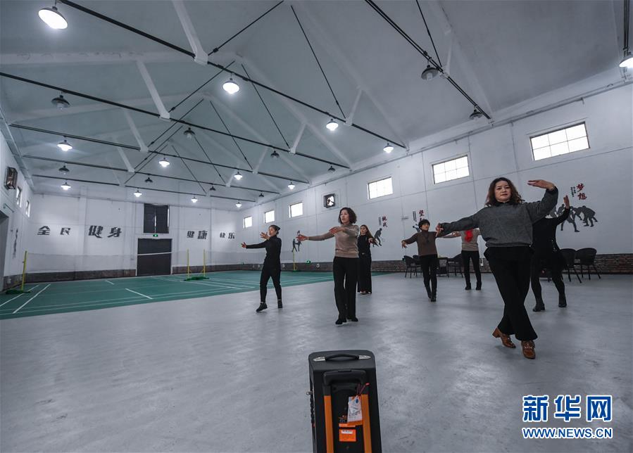 12月20日,村民們在舊糧倉改建的室內體育館內排練廣場舞。 新華社記者 徐昱 攝