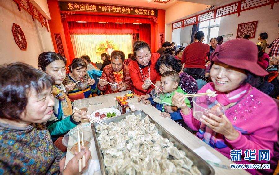 12月20日,老鄰居們一起吃餃子敘友情。 當日,北京市門頭溝區(qū)東辛房街道一百多名棚戶區(qū)改造后搬進新樓房的老鄰居們聚在一起包餃子、吃餃子,迎接即將到來的冬至。 新華社記者李欣攝