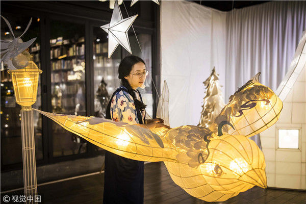 2018年5月6日,廣州,在天河區(qū)一家大商場(chǎng)辦個(gè)展時(shí),用紙片做成的北極熊、大松樹、火烈鳥、紙房子在光線的配合下美輪美奐,吸引了很多顧客駐足?!皫缀趺總€(gè)人一看到,都會(huì)走進(jìn)那個(gè)夢(mèng)幻的場(chǎng)景里,和這些紙雕一起合影?!眻D片攝于2018年5月6日。