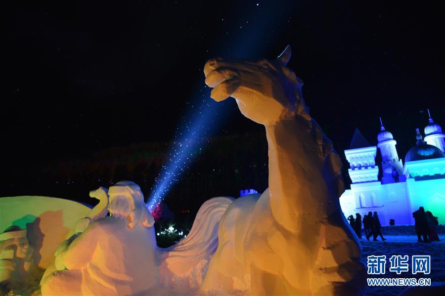 這是在冰雪節(jié)開幕式上展出的雪雕(12月21日攝)。新華社記者鄒予攝