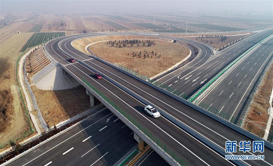 12月16日無人機(jī)拍攝的京秦高速公路二期工程河北玉田西進(jìn)出口處的立交橋。新華社記者楊世堯攝