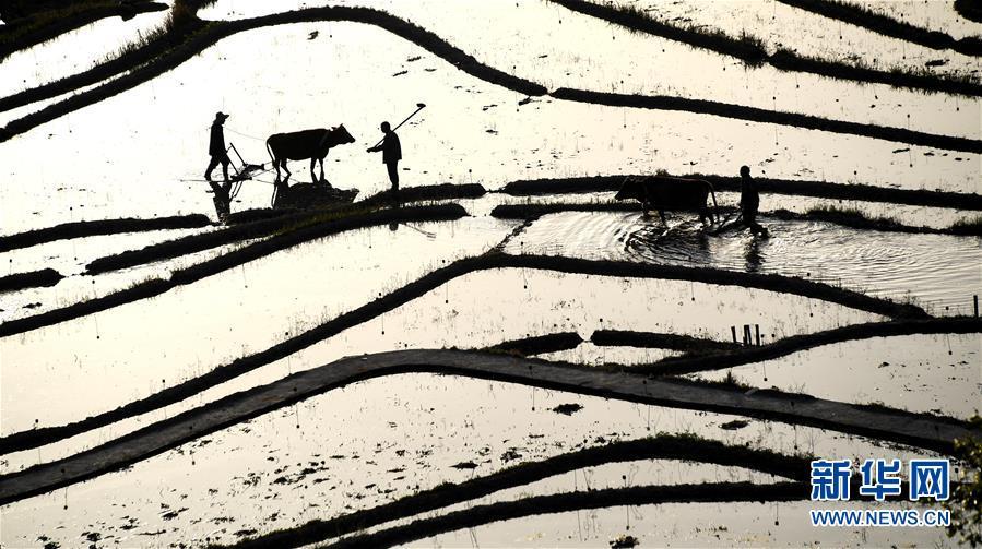 4月10日清晨,湖北省蘄春縣霧云山村的農(nóng)民在梯田勞作。 在即將過去的2018年,各地攝影師用鏡頭記錄下四季中國。大江南北,一幅幅色彩斑斕的美麗畫卷徐徐展開。 新華社記者 程敏 攝