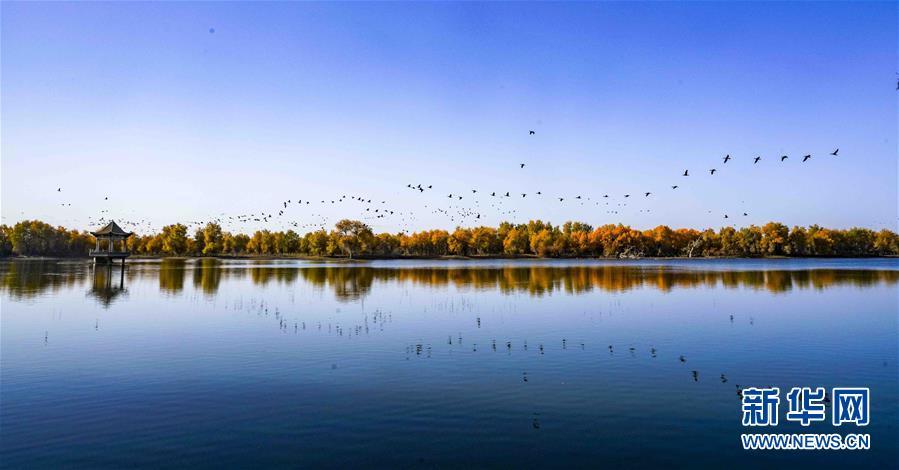 在位于新疆巴音郭楞蒙古自治州輪臺(tái)縣的一處胡楊林,一群鳥從水面上飛過(guò)(10月25日攝)。 在即將過(guò)去的2018年,各地?cái)z影師用鏡頭記錄下四季中國(guó)。大江南北,一幅幅色彩斑斕的美麗畫卷徐徐展開。 新華社記者 趙戈 攝
