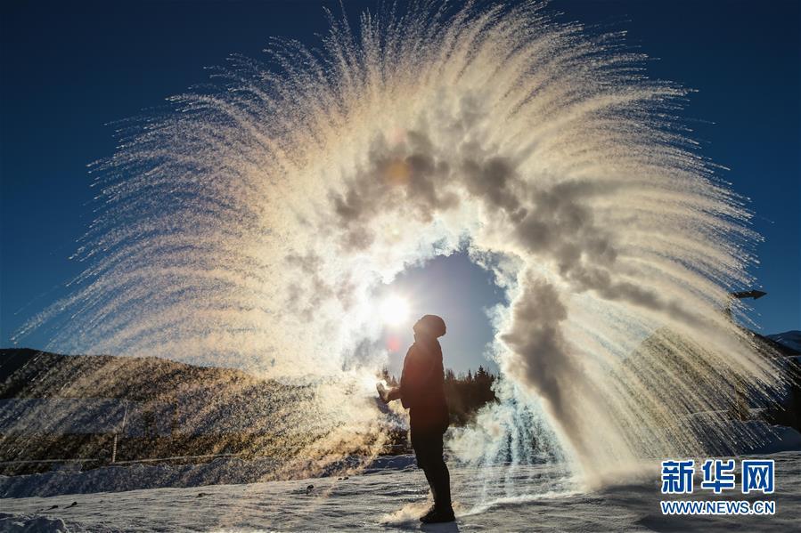 1月22日,在新疆阿勒泰地區(qū)布爾津縣禾木村,來自烏魯木齊的游客體驗(yàn)“潑水成冰”。 在即將過去的2018年,各地?cái)z影師用鏡頭記錄下四季中國(guó)。大江南北,一幅幅色彩斑斕的美麗畫卷徐徐展開。 新華社記者李京攝