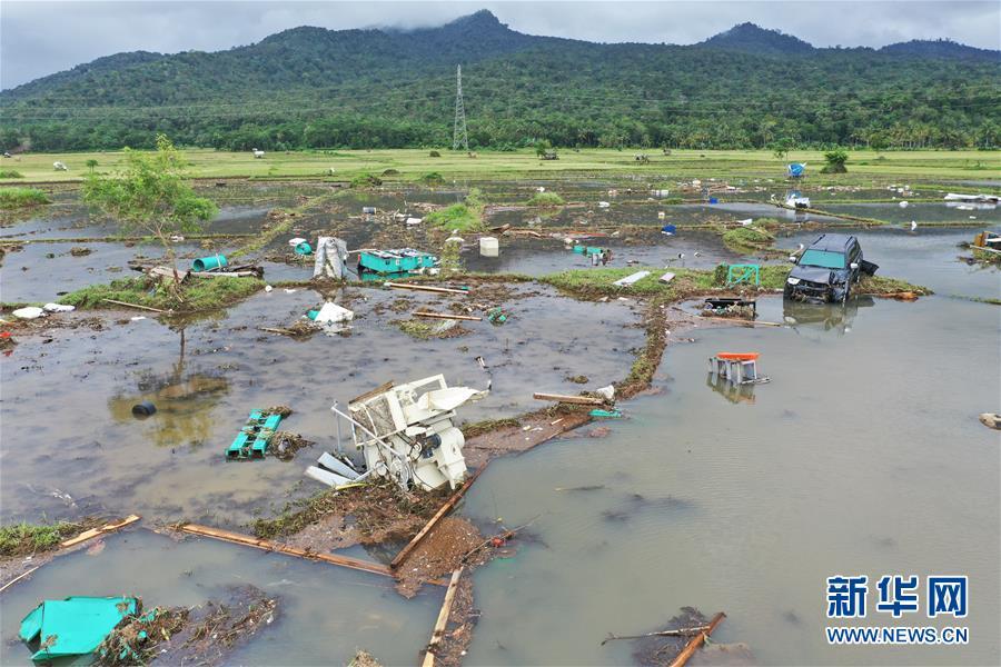 這是12月24日拍攝的印尼萬丹省一處被海嘯損毀的農(nóng)田。 印度尼西亞抗災(zāi)署發(fā)言人24日說,印尼西部巽他海峽海嘯死亡人數(shù)已經(jīng)上升至373人。 新華社記者 杜宇 攝