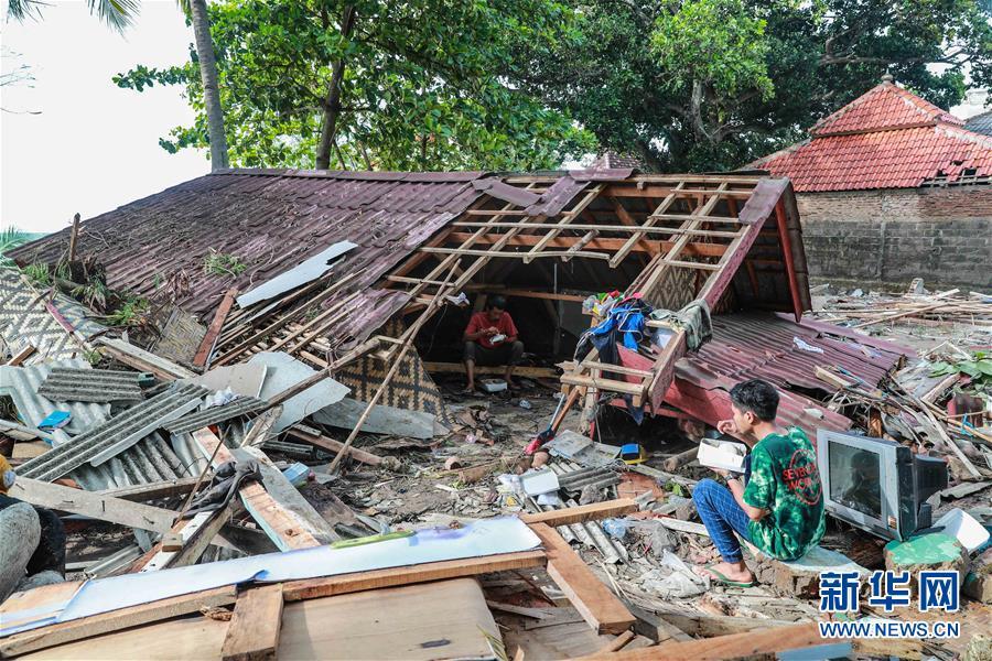 12月24日,受災群眾在印尼萬丹省被海嘯損毀的房屋前吃飯。 印度尼西亞抗災署發(fā)言人24日說,印尼西部巽他海峽海嘯死亡人數(shù)已經(jīng)上升至373人。 新華社記者 張可任 攝