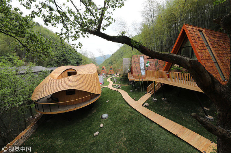 2018年4月22日,浙江寧波,樹蛙部落的特色房屋。張培堅(jiān)/視覺(jué)中國(guó)