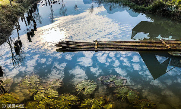2018年12月18日,廣西桂林,陽(yáng)朔縣遇龍河畔。晨光中的泡泡屋。