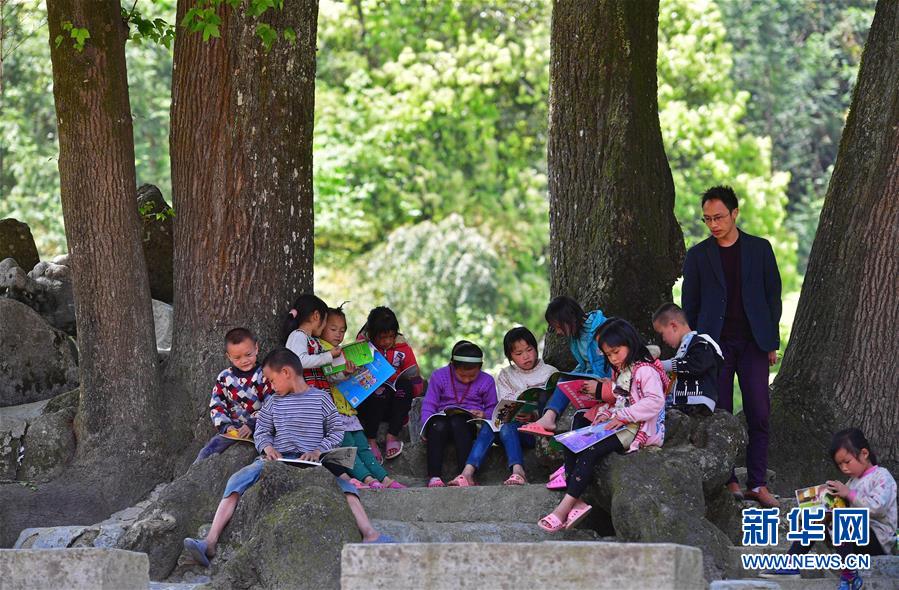 烏英教學(xué)點的孩子們在大樹下學(xué)習(xí)(4月17日攝)。