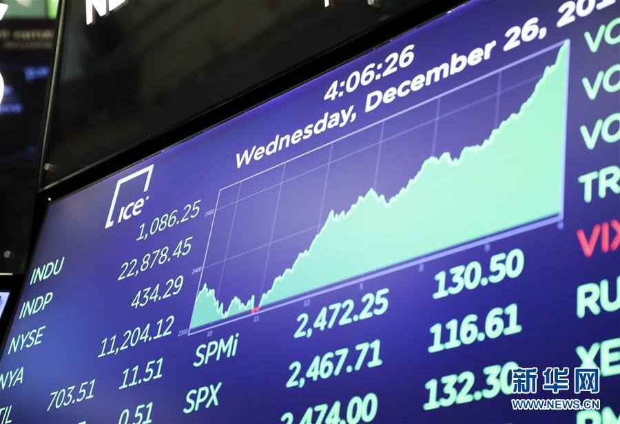 12月26日,美國紐約證券交易所的電子屏顯示當(dāng)天交易信息。新華社記者 王迎 攝