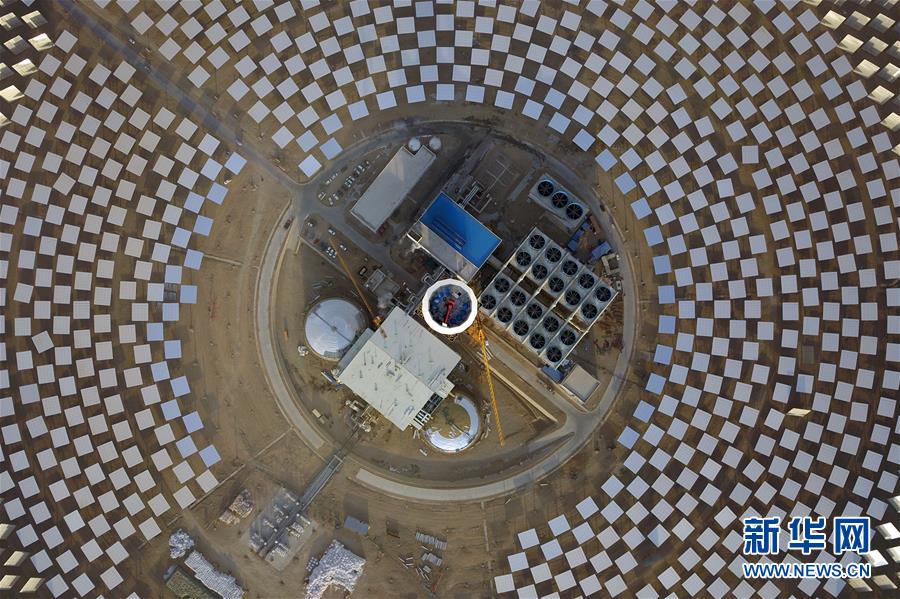 這是在敦煌市光電產(chǎn)業(yè)園區(qū)拍攝的敦煌100兆瓦熔鹽塔式光熱電站局部(12月25日無人機(jī)拍攝)。 新華社記者 范培珅 攝