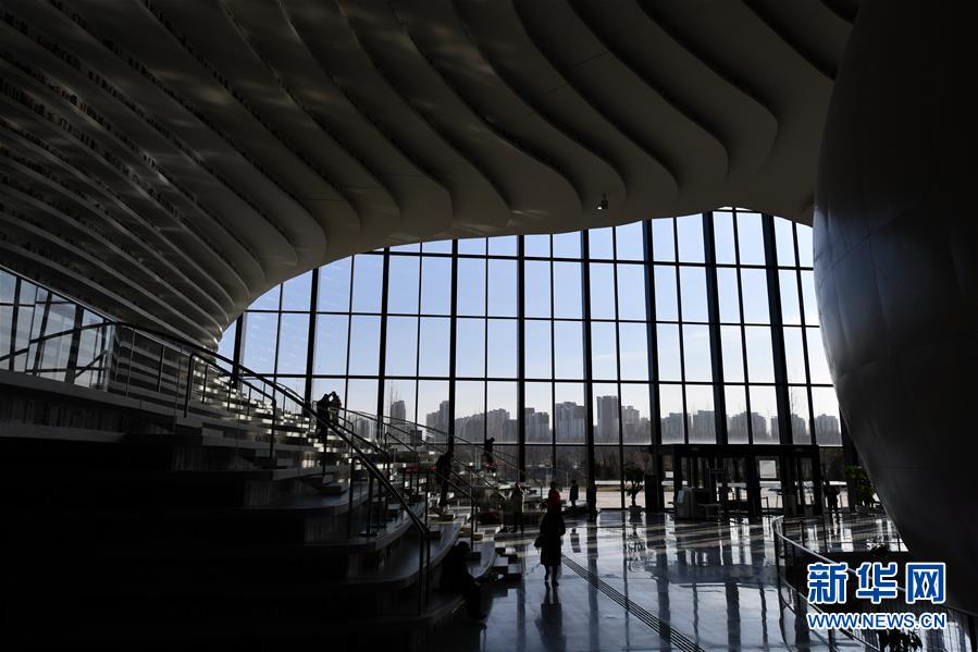 這是12月27日拍攝的天津?yàn)I海新區(qū)圖書館中庭。 濱海新區(qū)圖書館位于天津?yàn)I海文化中心,2017年10月1日正式開館,設(shè)計(jì)立意為“濱海之眼”和“書山有路勤為徑”。圖書館現(xiàn)有藏書60多萬冊,一年多來接待讀者約280萬人次,已成為濱海新區(qū)的文化“新地標(biāo)”。 新華社記者李然攝