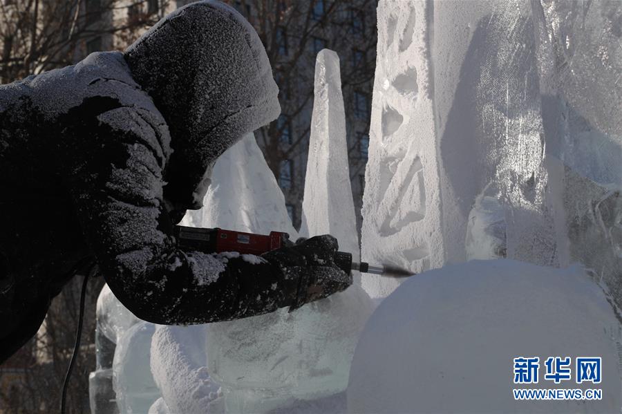 12月27日,來自東北石油大學(xué)的選手在比賽中完善冰雕作品。 當(dāng)日,第十六屆黑龍江省大學(xué)生冰雕藝術(shù)設(shè)計(jì)創(chuàng)作大賽在哈爾濱兆麟公園落下帷幕,全省高校共有99支隊(duì)伍參賽。 新華社記者曹霽陽(yáng)攝