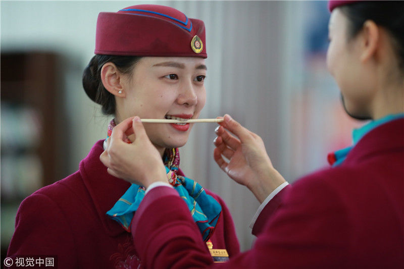 2018年12月27日,四川成都,為備戰(zhàn)即將開通的成雅鐵路,中國鐵路成都局集團有限公司成都客運段動車二隊對成雅動車的乘務(wù)人員進行理論、形體、服務(wù)禮儀等內(nèi)容的培訓(xùn)。