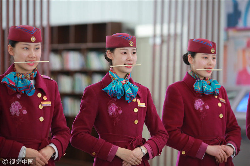 2018年12月27日,四川成都,為備戰(zhàn)即將開通的成雅鐵路,中國鐵路成都局集團有限公司成都客運段動車二隊對成雅動車的乘務(wù)人員進行理論、形體、服務(wù)禮儀等內(nèi)容的培訓(xùn)。