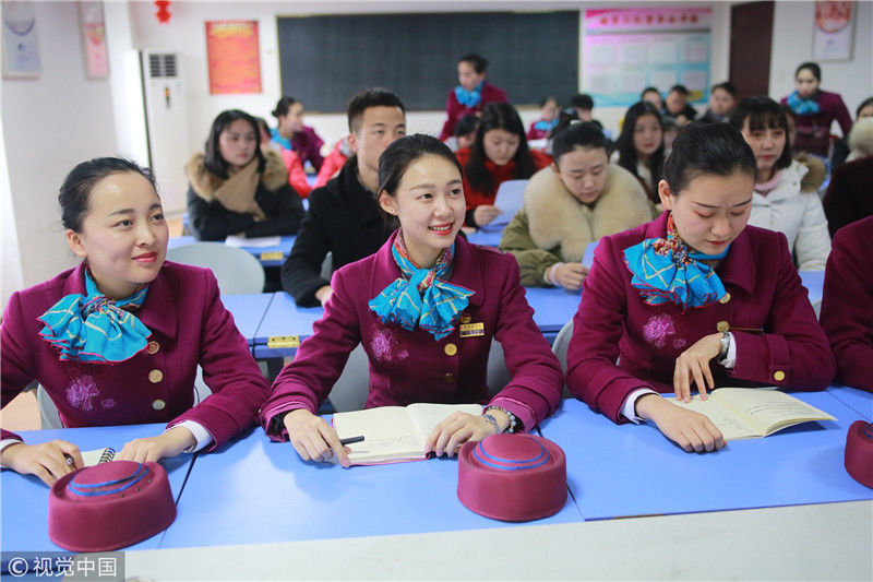 2018年12月27日,四川成都,為備戰(zhàn)即將開通的成雅鐵路,中國鐵路成都局集團(tuán)有限公司成都客運(yùn)段動(dòng)車二隊(duì)對成雅動(dòng)車的乘務(wù)人員進(jìn)行理論、形體、服務(wù)禮儀等內(nèi)容的培訓(xùn)。
