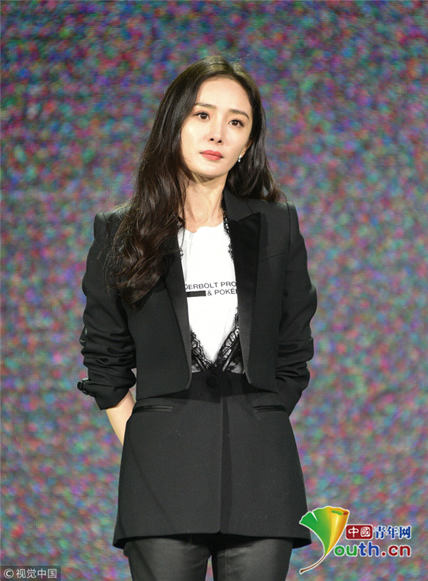 楊冪上臺(tái)領(lǐng)獎(jiǎng)西裝精致干練 談話間舉手顯呆萌