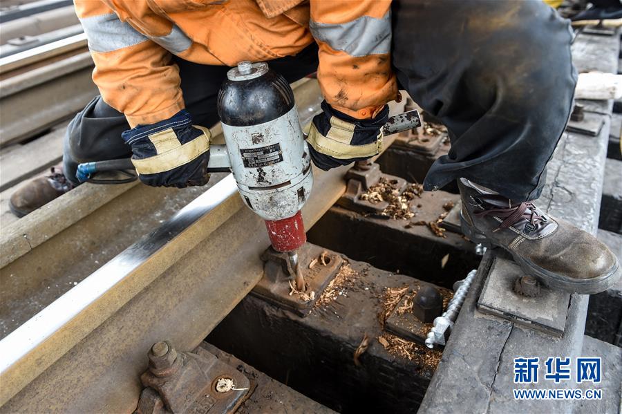 一名線路工在進行電鉆改眼作業(yè)(12月27日攝)。