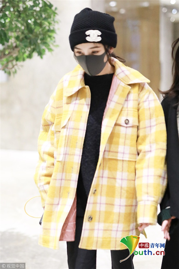 2018年1月6日,上海,楊冪現(xiàn)身某酒店。她戴著帽子口罩,身穿黑色套裝,而外面搭配的奶黃格子外套卻瞬間減齡,明亮又惹眼,無懼寒冬露著纖細(xì)腳踝,依舊是那個(gè)很會(huì)穿搭的大冪冪。