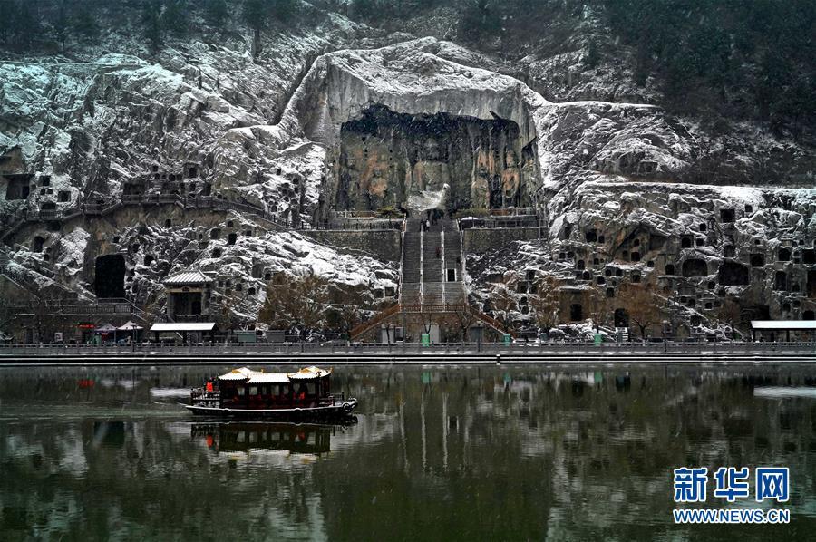 當(dāng)日,雪后的河南洛陽(yáng)龍門(mén)石窟景區(qū)銀裝素裹,一幅天然的水墨畫(huà)卷徐徐展開(kāi)。