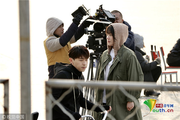 2019年1月9日,北京,鄧倫、馬思純現(xiàn)身后海滑冰場,騎冰車拍攝新劇《加油你是最棒的》。寒冷的北京,二人身著單薄的劇中服裝現(xiàn)身拍攝片場,不顧嚴寒超敬業(yè)。