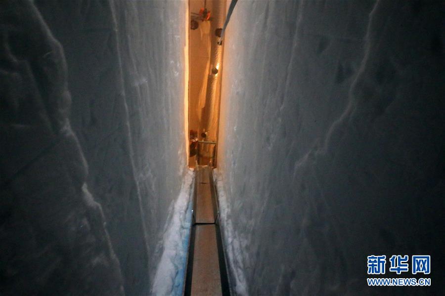 這是深冰芯房?jī)?nèi)10米深的鉆探槽(1月12日攝)。  新華社記者 劉詩(shī)平 攝