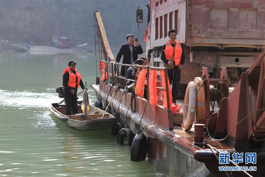 1月22日,渡輪在八吉渡口接送群眾(無人機拍攝)。新華社記者 歐東衢 攝