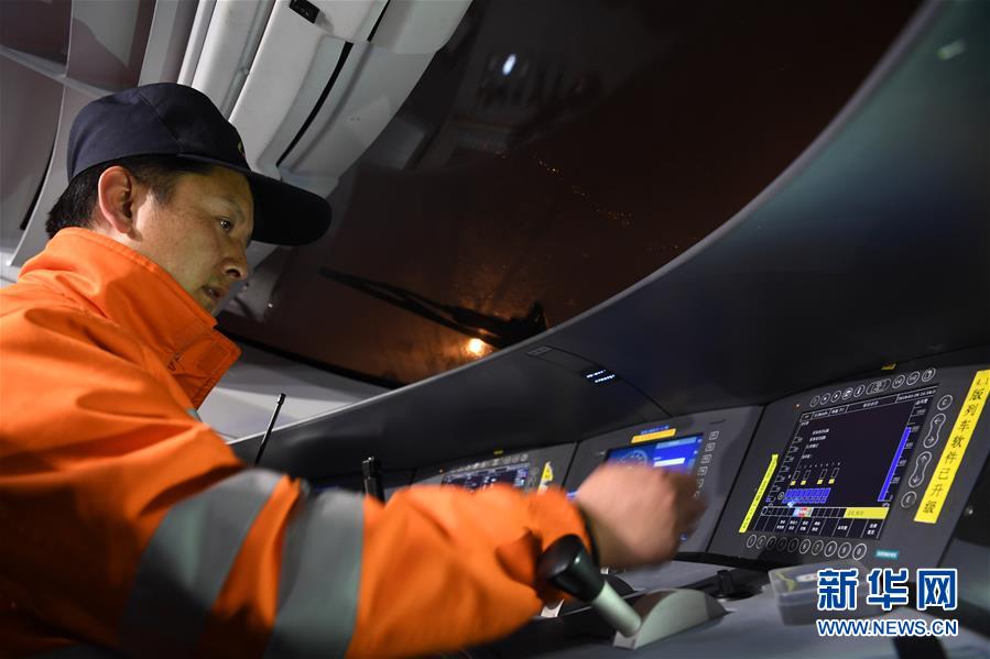 1月29日,王瑞在動車上進行調(diào)車作業(yè)。新華社記者劉軍喜攝