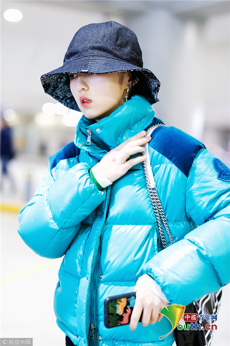 2019年1月31日,上海,張子楓現(xiàn)身機場。她身穿藍色羽絨服,戴著大檐帽也難擋好氣色,雪膚紅唇妝容精致展現(xiàn)女人味。