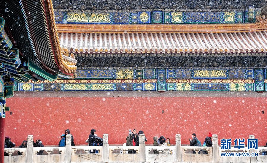 2月14日,游客在雪中游覽北京故宮。 當(dāng)日,北京降雪,大批游人來(lái)到故宮游覽賞雪。 新華社記者 李欣 攝