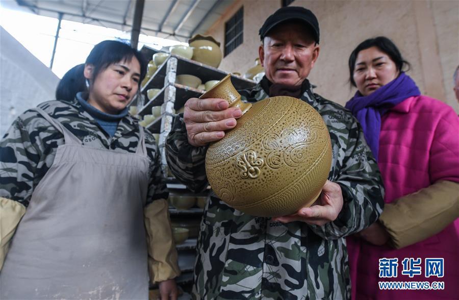 2月16日,陳新華拿著一個(gè)素坯準(zhǔn)備進(jìn)入下一步工序。新華社記者 徐昱 攝