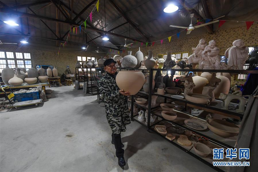 2月16日,陳新華拿著一個素坯準備進入下一步工序。新華社記者 徐昱 攝