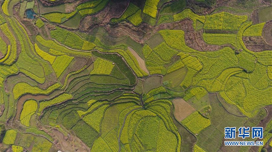 廣西融安縣東起鄉(xiāng)長豐村的田園春色(3月10日無人機(jī)拍攝)。 近日,隨著氣溫持續(xù)回升,廣西融安縣境內(nèi)的油菜花開放,春意盎然。 新華社記者 黃孝邦 攝