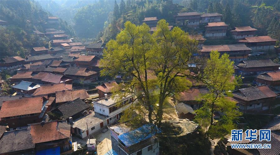 這是黔桂烏英苗寨春色(3月20日無人機(jī)拍攝)。