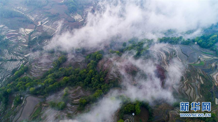 這是在云南省元陽(yáng)縣拍攝的傍晚時(shí)分的哈尼梯田美景(4月3日無(wú)人機(jī)拍攝)。哈尼梯田位于云南省哀牢山南部,以哈尼族為主的當(dāng)?shù)厝罕娗О倌陙?lái)生生不息在大地上“雕刻”出這一農(nóng)耕文明奇觀。春日里,漫山的水稻梯田與云海、森林、村莊形成一幅美麗的畫(huà)卷,吸引眾多海內(nèi)外游客前來(lái)觀賞。新華社記者 胡超 攝