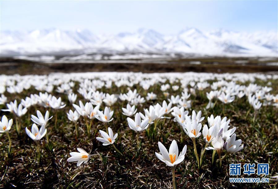 這是新疆那拉提景區(qū)雪山腳下盛開的野百合(4月4日攝)。新華社記者 沙達(dá)提 攝