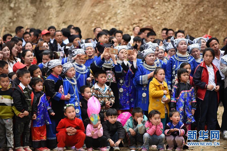 苗族群眾和來(lái)賓在觀看“三月三”民族歌舞表演(4月6日攝)。4月6日至7日,在貴州省黔東南苗族侗族自治州劍河縣觀么鎮(zhèn)新民村和新合村,來(lái)自劍河縣和三穗縣的苗族同胞歡聚一堂,通過民族歌舞展演、非遺手工藝展示、千戶祭“巫耶”、跳蘆笙舞等形式,與來(lái)賓一起歡慶2019年高雍苗族“三月三”民俗文化節(jié)。 新華社記者 楊文斌 攝