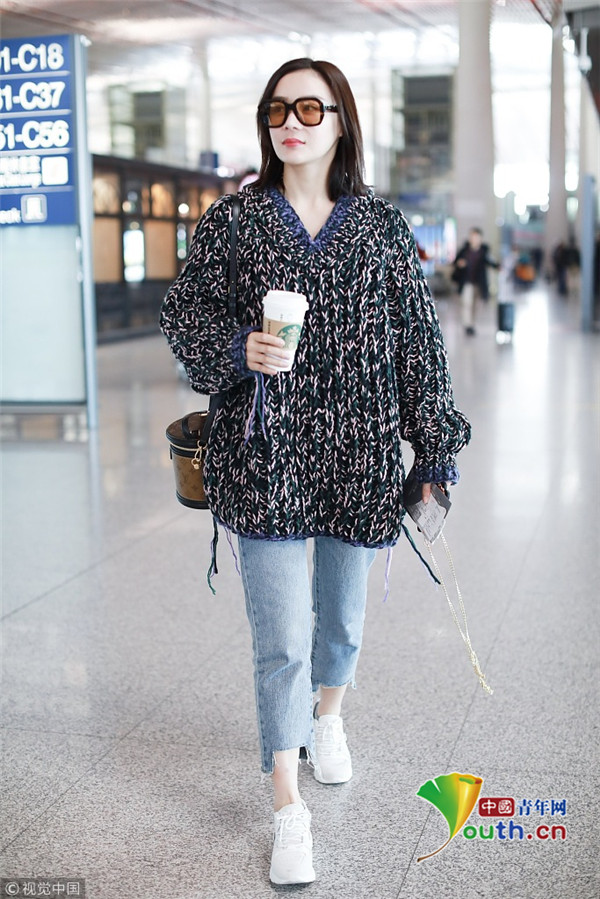 2019年4月10日,北京,袁姍姍現(xiàn)身機(jī)場。她穿碎花毛衣低調(diào)玩文藝,戴茶色墨鏡手捧咖啡,露腳踝美腿纖細(xì),休閑打扮隨意又愜意,時尚有型舒適十足。
