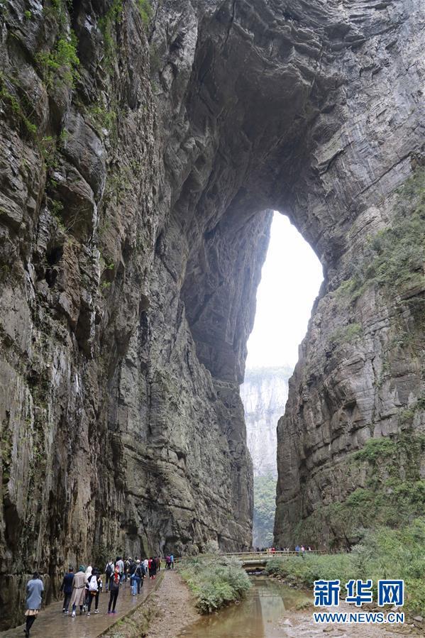 游客在天生三橋景區(qū)內(nèi)的青龍橋景點游覽(3月27日攝)。 隨著天氣轉(zhuǎn)暖,重慶武隆天生三橋景區(qū)風(fēng)景如畫,氣勢磅礴的天生石橋和綠意盎然的山林相映成趣,吸引眾多游客前來踏春賞景。 新華社記者劉潺攝