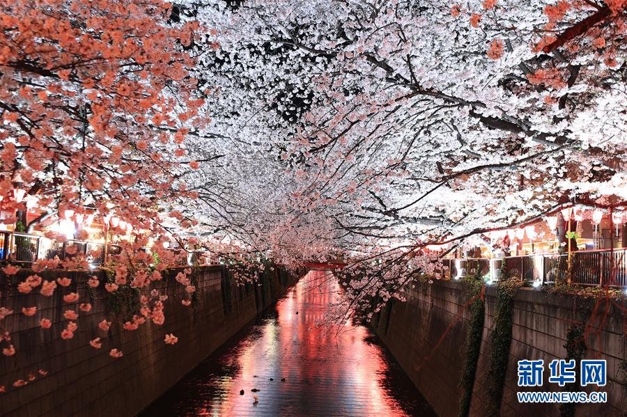 這是2019年4月3日在日本東京拍攝的目黑川沿岸櫻花。 新華社記者杜瀟逸攝