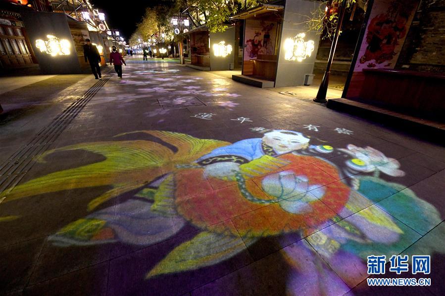 楊柳青年畫主題燈光布滿在天津楊柳青古鎮(zhèn)步行街上(12月4日攝)。 運(yùn)河穿城過,古鎮(zhèn)草色新,千年畫鄉(xiāng)楊柳青自傳統(tǒng)中浸潤出與眾不同的顏色。40年斗轉(zhuǎn)星移,這個沉淀千年的小鎮(zhèn),用別樣的風(fēng)姿講述了一個歷史與現(xiàn)在碰撞而出的改革“新”故事。 新華社記者岳月偉攝