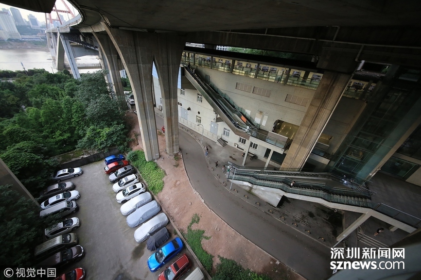 深圳新聞網(wǎng)訊 2018年5月29日,重慶,魔幻重慶又雙叒叕放大招!還有一個獨特的亮點,重慶軌道交通3號線銅元局站,出口由一段長梯銜接上方立交橋和下方的路面,與全國最高城市立交橋蘇家壩立交組成了獨特風(fēng)景,許多游客專門趕來拍照。
