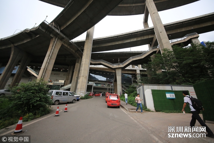 2018年5月29日,重慶,魔幻重慶又雙叒叕放大招!還有一個(gè)獨(dú)特的亮點(diǎn),重慶軌道交通3號(hào)線銅元局站,出口由一段長(zhǎng)梯銜接上方立交橋和下方的路面,與全國(guó)最高城市立交橋蘇家壩立交組成了獨(dú)特風(fēng)景,許多游客專(zhuān)門(mén)趕來(lái)拍照。