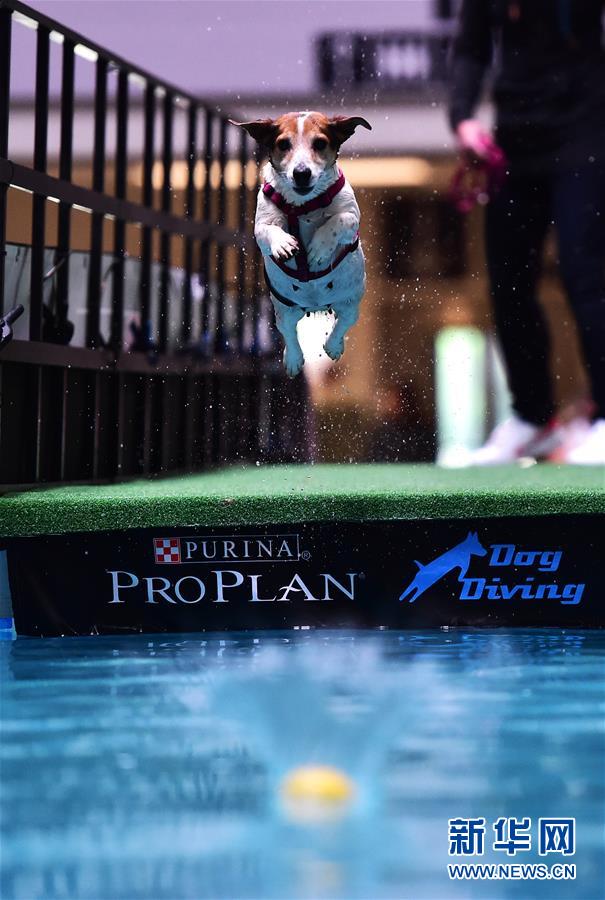 5月19日,在德國(guó)多特蒙德舉行的寵物展上,一只杰克羅素梗參加跳水比賽。 為期三天的德國(guó)多特蒙德“狗和貓”寵物展19日落幕。寵物展期間,人們帶著自己的“萌寵”來(lái)到會(huì)場(chǎng),參與寵物跳水、舞蹈、選美等趣味比賽,并與其他寵物愛(ài)好者及展商交流互動(dòng)。 新華社記者逯陽(yáng)攝