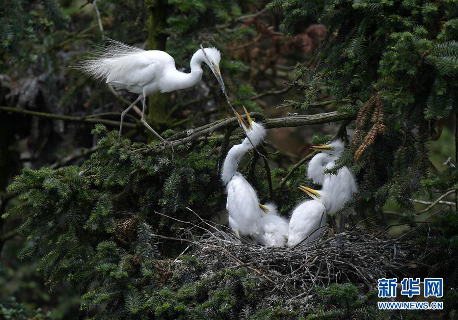 在江西省南昌市新建區(qū)象山森林公園內(nèi),白鷺和自己的雛鳥在一起(5月21日攝)。 近日,在江西省南昌市新建區(qū)象山森林公園內(nèi),已安家筑巢的大批鷺鳥陸續(xù)孵化出了后代。象山森林公園有著“鷺鳥王國”的美譽(yù),生態(tài)環(huán)境良好,每年都會(huì)吸引白鷺、蒼鷺、夜鷺等種類的鷺鳥飛抵棲息和繁衍后代。 新華社記者 彭昭之 攝