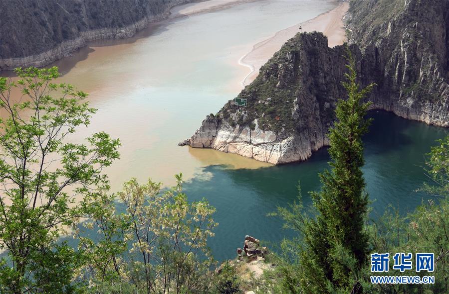 6月2日在甘肅省臨夏回族自治州永靖縣劉家峽水庫(kù)拍攝的洮河和黃河匯合水域景觀。