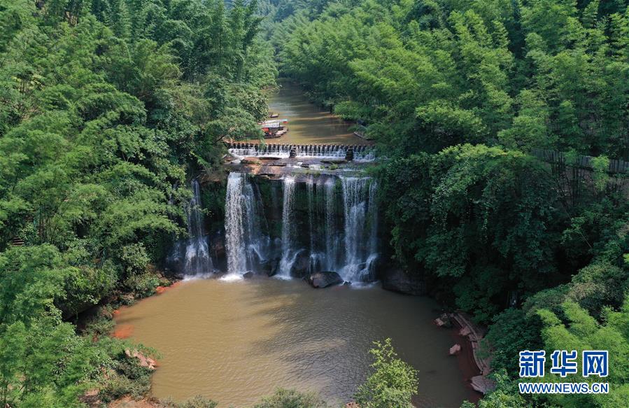 貴州赤水四洞溝景區(qū)的“水簾洞”(6月4日攝)。 貴州遵義赤水市有眾多大大小小的瀑布群,素有“千瀑之市”的美譽,飛瀑美景吸引八方游客前來賞景度假。 新華社記者馮為民攝